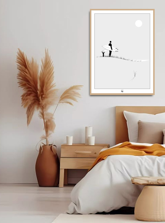 Par conséquent, cette Affiche duo surfeurs dans les Landes devient une pièce décorative unique.